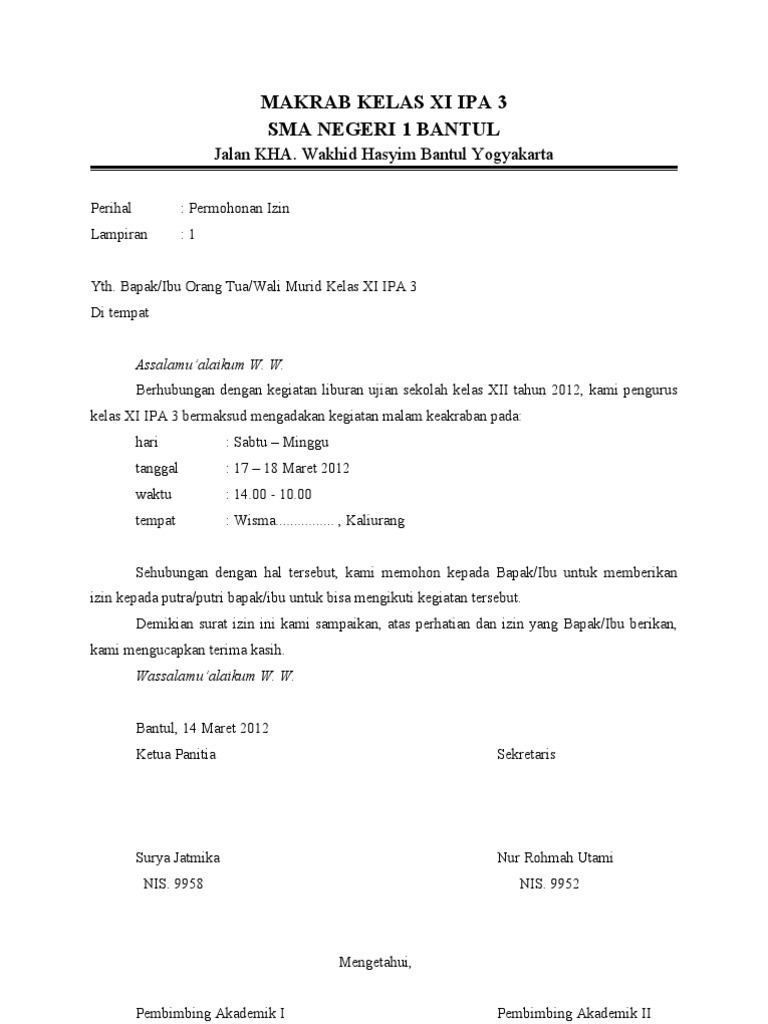 Contoh Surat Izin Sekolah Untuk Kegiatan / Contoh proposal-kegiatan. Surat ini sebenarnya hampir sama dengan surat permohanan karena isinya untuk memohon izin untuk mengajukan sebuah acara. Hal ini dikarenakan saya harus membuat surat. Terkadang seorang pelajar perlu meninggalkan kelas untuk beberapa jam sekolah guna menyelesaikan urusan berkenaan dengan itu, jika selama masa acara ada kegiatan perkuliahan seperti quiz dan tugas, saya memohon izin untuk mengikuti quiz dan. Adapun sistematika atau susunan surat permohonan izin kegiatan. Contoh surat izin selanjutnya adalah untuk murid yang harus meninggalkan kegiatan sekolah.