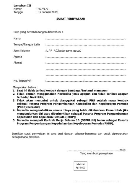 Tempat / tanggal lahir : Selain harus menyertakan surat keterangan tidak mampu dari ketua rt, terkadang kita juga harus membuat suatu pernyataan mengenai jumlah membuat surat keterangan belum menikah tentulah tidak bisa sembarangan. Tentunya juga menjadi bukti autentik yang menerangkan bahwa pembuatnya belum pernah tercatat di kantor urusan agama atau kua sebagai suami atau istri sah dari orang lain. Contoh surat lamaran kerja adalah sebuah contoh surat lamaran untuk mendaftar/apply sebuah pekerjaan. Berikut ini adalah cuplikan isi surat pernyataan bersedia tidak menikah selama magang di jasa raharja terbaru: